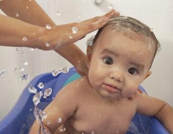洗頭:先將嬰兒洗發香波在手中倒少許,輕輕在寶寶頭上揉洗,注意不要讓水和香波流進寶寶的眼睛裡及耳道內,最後請另一個人幫助用小水壺的溫水沖淨頭發並擦干。