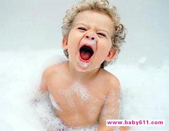 給小兒洗澡,動作要輕柔敏捷。以臍部為界,分兩部分洗。先使小兒仰臥,媽媽用左手托住小兒枕部,拇指及中指將小兒雙耳向前按,貼於耳前臉上,以防洗臉水灌入耳內。小兒臀腰部夾在成人腋下,背部躺在成人左前臀上,固定後,右手用小毛巾浸溫開水,先洗雙眼分泌物(自內眼角向外眼角擦洗)、耳後、頸、胸、背、雙腋窩、雙上肢及雙手。新生兒的手掌抓得很緊,應掰開洗淨。擦洗腹部時,不要弄濕臍帶。此後,將小兒倒過來,使小兒的頭頂貼在媽媽的左胸前,用左手抓住小兒的左大腿,右手用浸水的小毛巾先洗會陰腹股溝及臀部(女嬰一定要從前向後洗),最後洗下肢及雙腳。一般不需用肥皂。