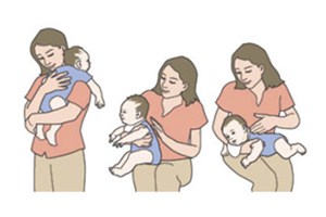 媽媽坐好雙腿合攏,將寶寶橫放,讓其側趴在腿上,寶寶頭部略朝下。媽媽以一只手扶住寶寶下半身,另一只手輕拍寶寶上背部即可。這個姿勢比較適合較小的寶寶,為了防止寶寶滑落,要適當用力把寶寶身體固定在媽媽腿上。有時,新生兒沒有吞入空氣,就不要強迫新生兒打嗝兒,特別是母乳喂養的新生兒。刺激新生兒打嗝兒的動作不要太久,如果新生兒不容易打嗝兒也不要著急,幾周以後父母就會了解新生兒的習慣並且非常熟練了。
