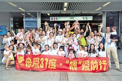 大約10分鐘後,列車到達大劇院站,媽媽們結束哺乳,帶著寶寶下車,“快閃”活動結束。