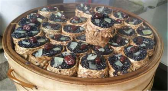 黑米飯糕也是寧波傳統的立夏點心之一,是將烏樹葉搗爛泡水後,用烏樹葉汁泡糯米使其染色變黑,再將泡好的黑糯米加糖蒸熟後手工壓制成糯米糕,吃起來有一股淡淡的烏樹葉香味。