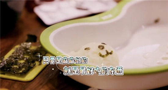 到了第二期,董潔為了挑食的兒子頂頂,精心烹饪了“彩虹飯”,細心地將胡蘿卜、菠菜單獨翻炒,依順序將飯團、菠菜、胡蘿卜等放入碗中,倒扣在碟子裡,一盤漂亮的“彩虹飯”就大功告成了,不僅樣子好看,更能夠為孩子提供豐富而充足的營養。
