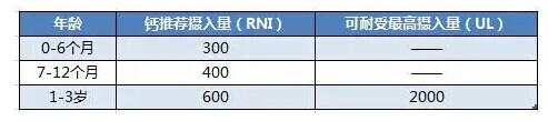注:嬰兒(0-12月齡)鈣攝入耐量上限還不確定。