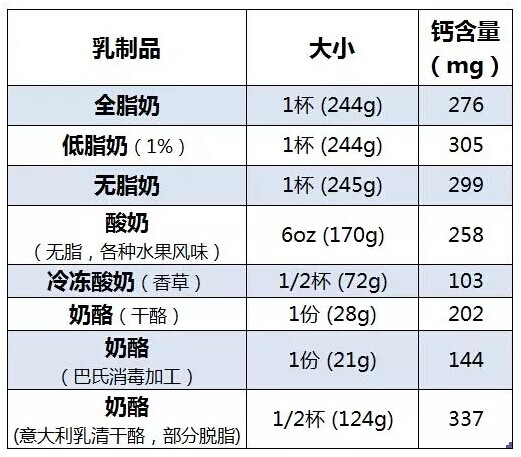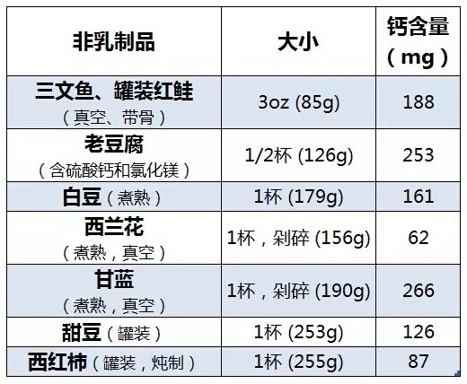 3、膳食:除牛奶外,其他食物也可以提供一些鈣質,詳見下一部分。