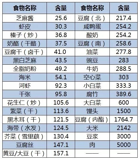 芝麻醬、蝦皮、榛子、豆腐干、海米等也是含鈣量比較高的食物。但是大家注意哦,高鈣食物裡可沒有骨頭湯哦!骨頭含鈣,但不溶於水。按照每日推薦的鈣攝入量,換算成骨頭湯的話得喝幾十升。快忘了“骨湯補鈣”這件事吧……另外提醒一下,蝦皮、海米之類的可能會比較鹹,不適宜給小寶寶多吃。
