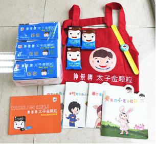 太子金健康大禮包(太子金脾胃健康手冊1本、《小金故事書》4本、太子金紙抽3包,濕紙巾3包,啪啪表1個、圍裙1個、太子金折頁說明書)。還有太子金顆粒產品(限量20份)