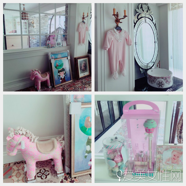 照片中的歐式嬰兒房間以白色為主,以粉色的木馬和鏡框點綴其中,女兒的衣服和鞋子也都是粉嫩嫩的,還有少女的香水和魔法棒,充滿夢幻,讓網友直呼“少女心爆棚”。